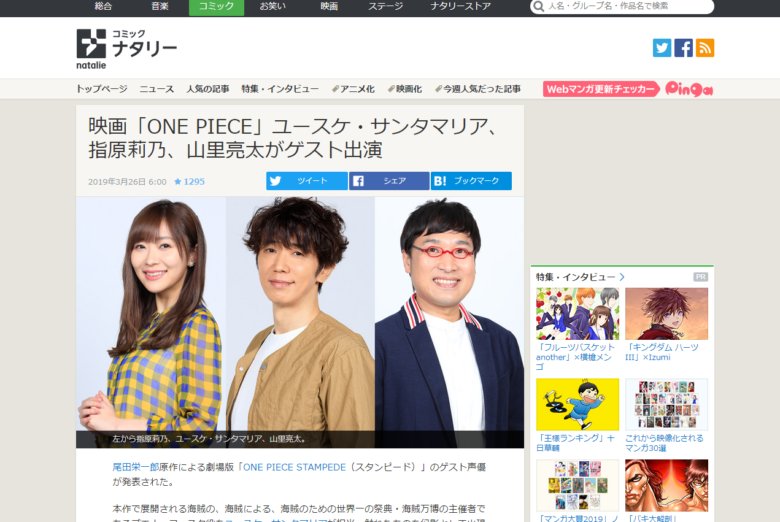 映画「ONE PIECE」ユースケ・サンタマリア、指原莉乃、山里亮太がゲスト出演